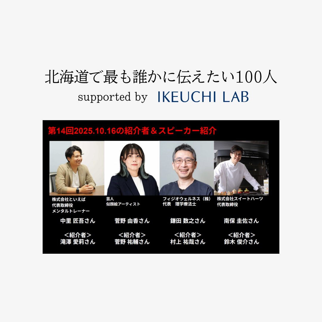 ■第13回「北海道で最も誰かに伝えたい100人 supported by IKEUCHI LAB」